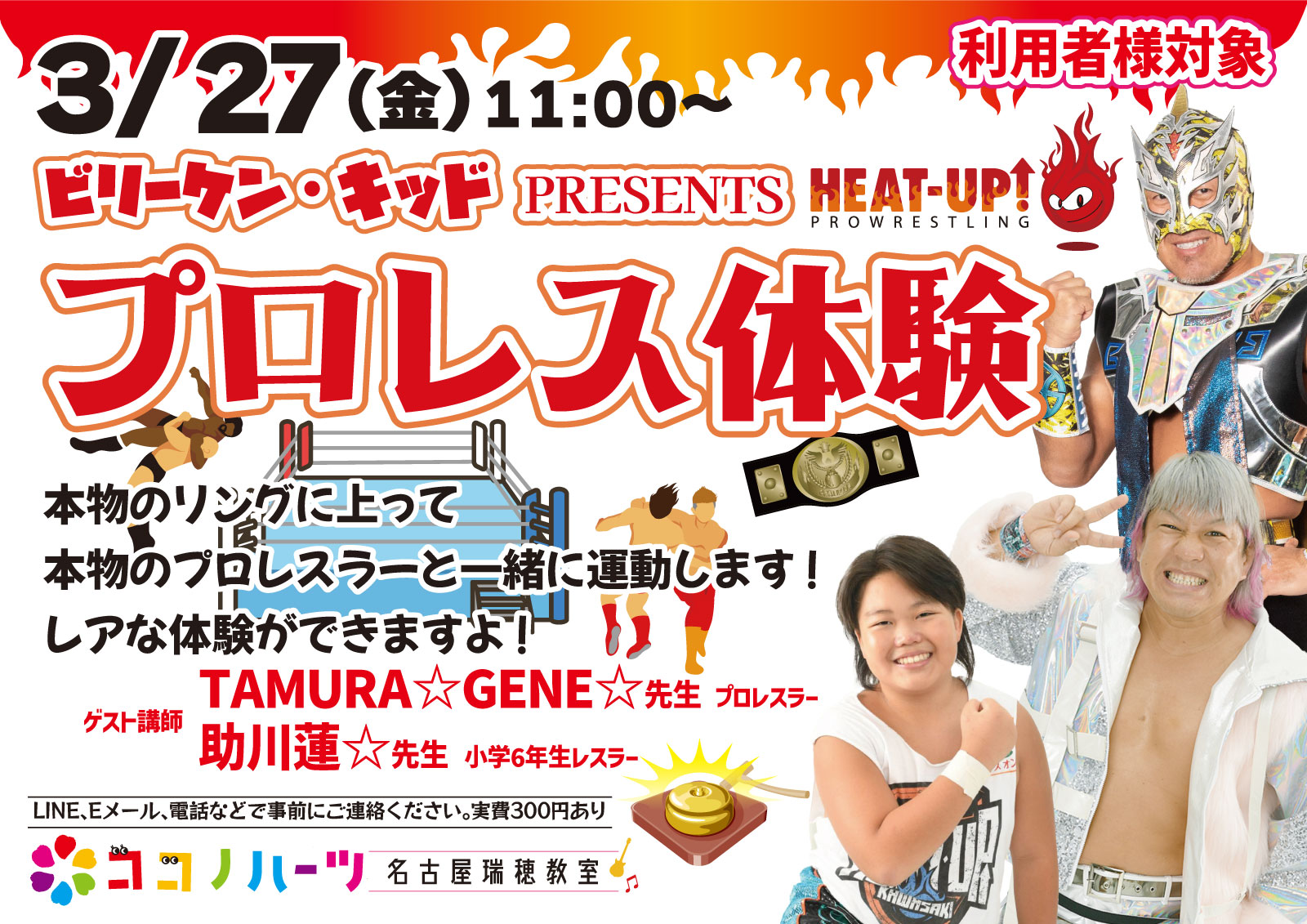 3/27、鶴舞のスポルティーバを利用してプロレス体験をします。