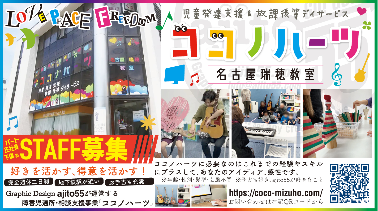 ココノハーツ名古屋瑞穂教室は子どもはもちろん大人だって凸凹や感性の違いを認めあって働きます。